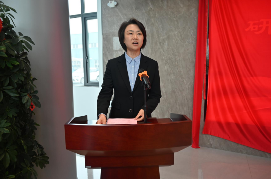 在全场员工的共同见证下,两位领导共同为研发楼揭牌。红绸轻落、揭牌完成,研发楼正式启用,现场掌声雷动,气氛热烈庄重。