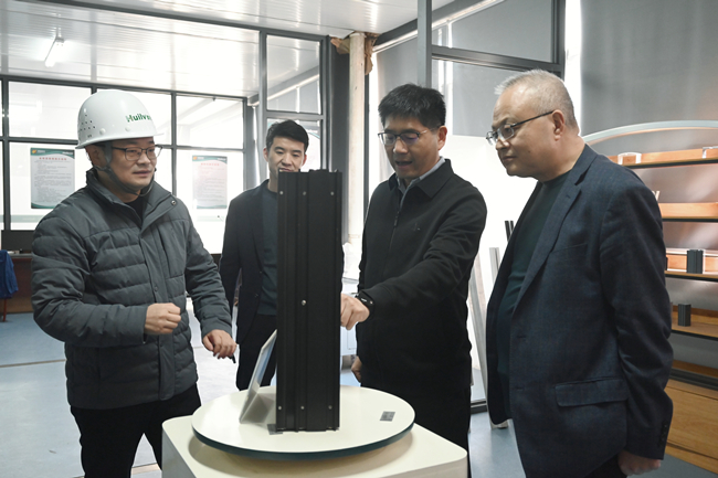 冯家成一行参观了辉铝新材研发中心和生产车间,详细了解了新型铝材从原料加工到精密制造全流程的生产工艺、技术特点。